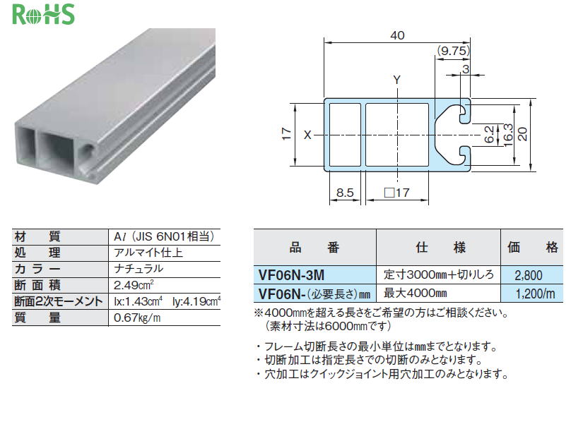 型 式 VF06N-3M (税別)(送料別)価格は都度、お問い合わせください VF06N-(必要長さ)mm (税別)(送料別)価格は都度、お問い合わせください