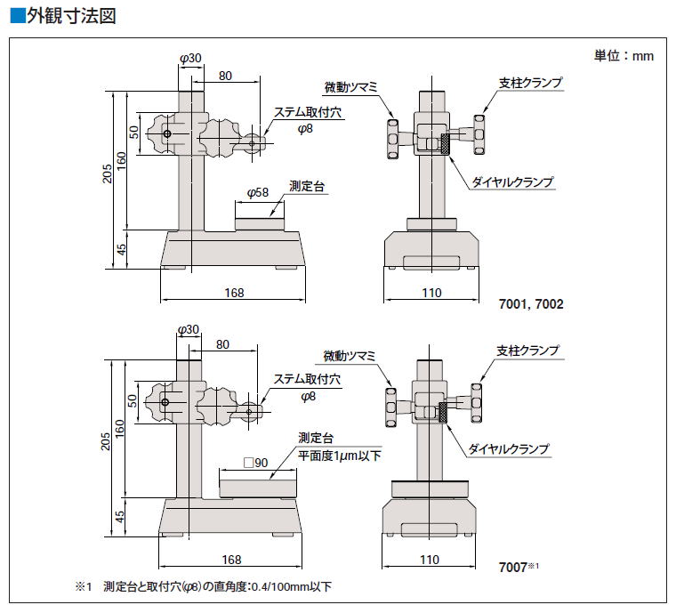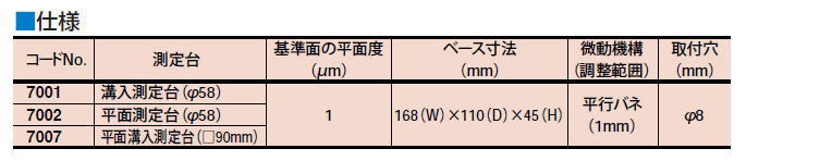 ●測定台:No.7001、7002はφ58mm No.7007は□90mm